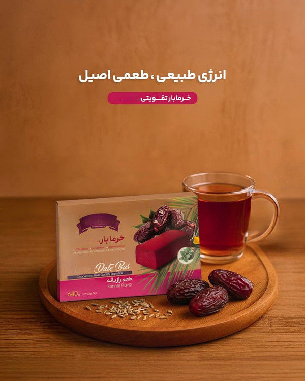 خرما بار تقویتی دکتر بیز دارای گیاه رازیانه است که ترکیب این گیاه با خرما، خواص آن را بیشتر کرده است.