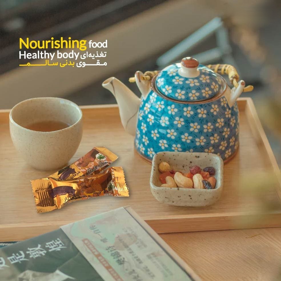 خرما بار تقویتی دکتر بیز دارای گیاه رازیانه است که ترکیب این گیاه با خرما، خواص آن را بیشتر کرده است.